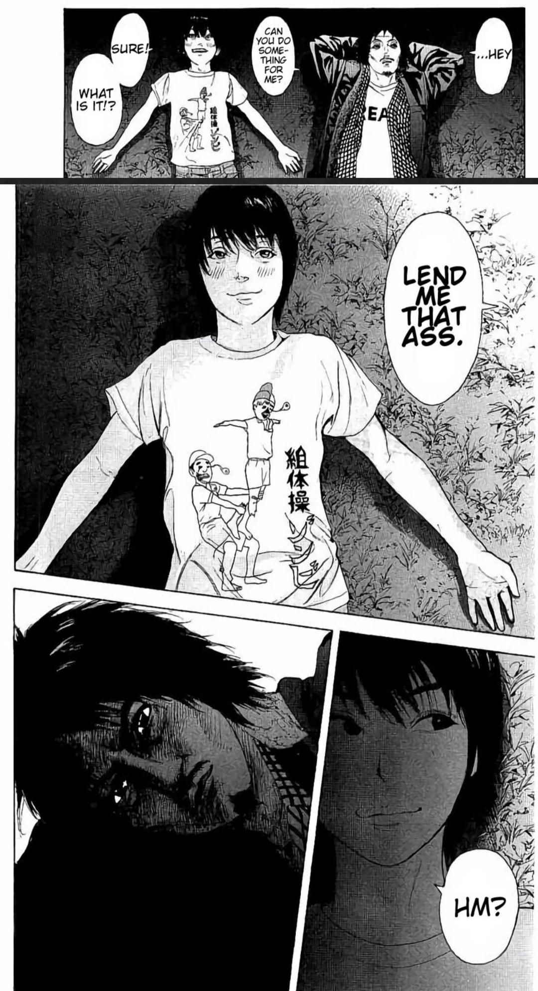 I hate him from taking this work from Dazai , which was his last one before suicide, and making this into a horror manga.