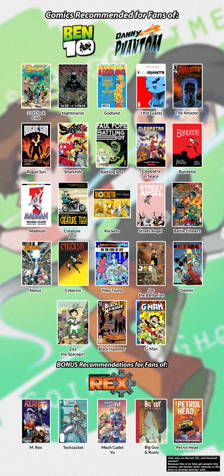 Kids Recs.jpg, Martial Arts Comics.jpg, Mindfuck Comics.jpg, Noncape American.jpg