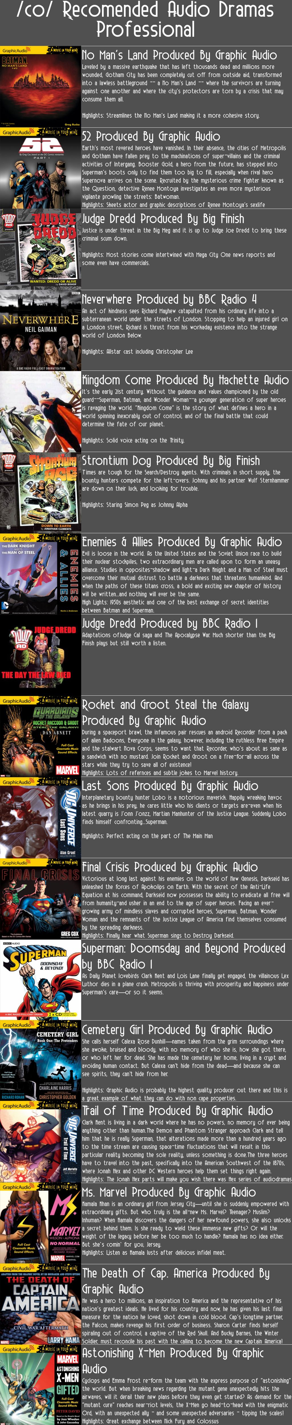 Alternatives to the Main DC Marvel Universe.jpg, Anthology.jpg, Anti-Recs.jpg, Audio Dramas - Fanmade.jpg