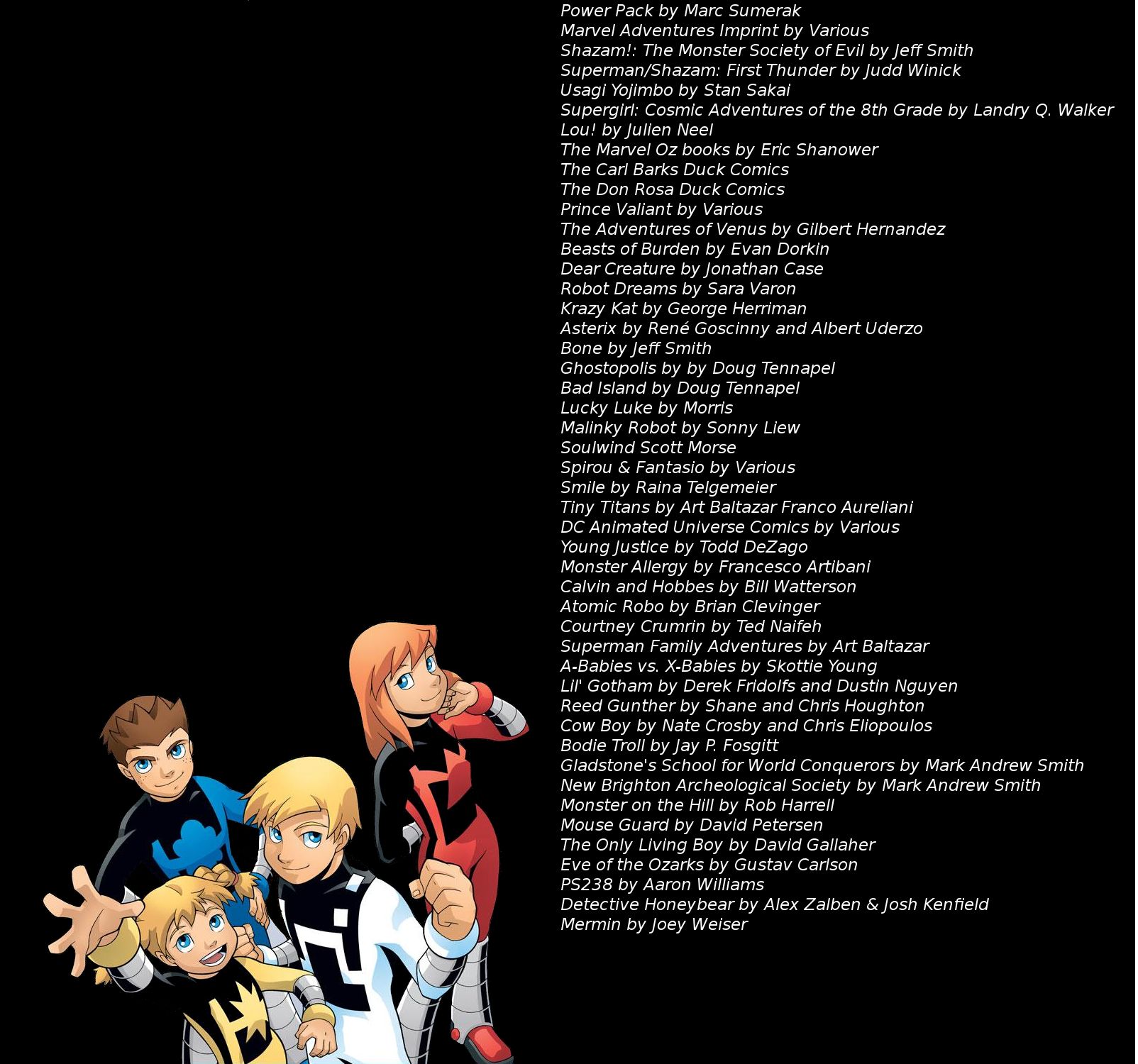 French Comics.jpg, Funny Animals.jpg, General Common Comic Recs v2.jpg, Good Comics.jpg