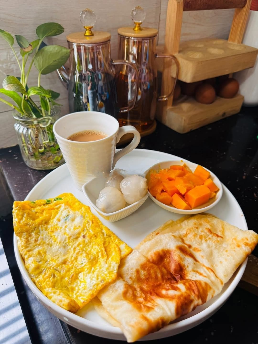 Not disagreeing with the health aspect of it but I don't like idea of eating fruits and milk with egg, I would rather enjoy eggs with chopped veggies and so on.
