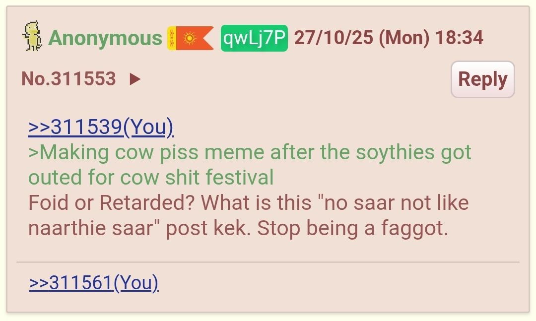 >Making cow piss meme after the soythies got outed for cow shit festival