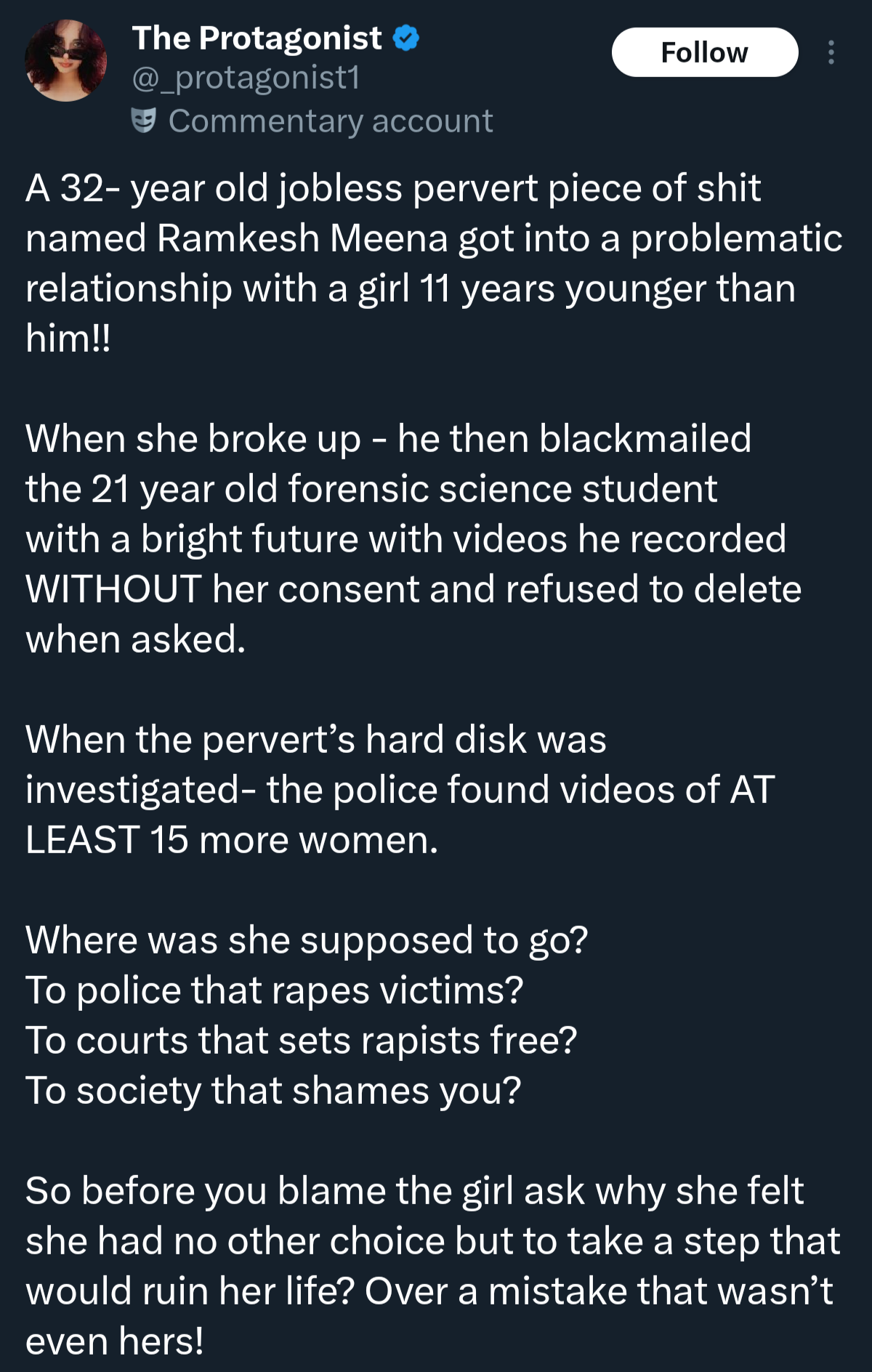 Pajeetas unsurprisingly justifying his murder saying he "non concensually" recorded their dick sucking fucking sessions with the bitch lol. All hail to this Sanatani Devi