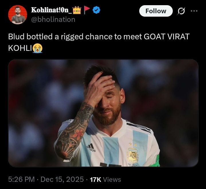 Chokli came all the way from London to meet Messi first in Mumbai then in Delhi and was denied in both places kekekekek
