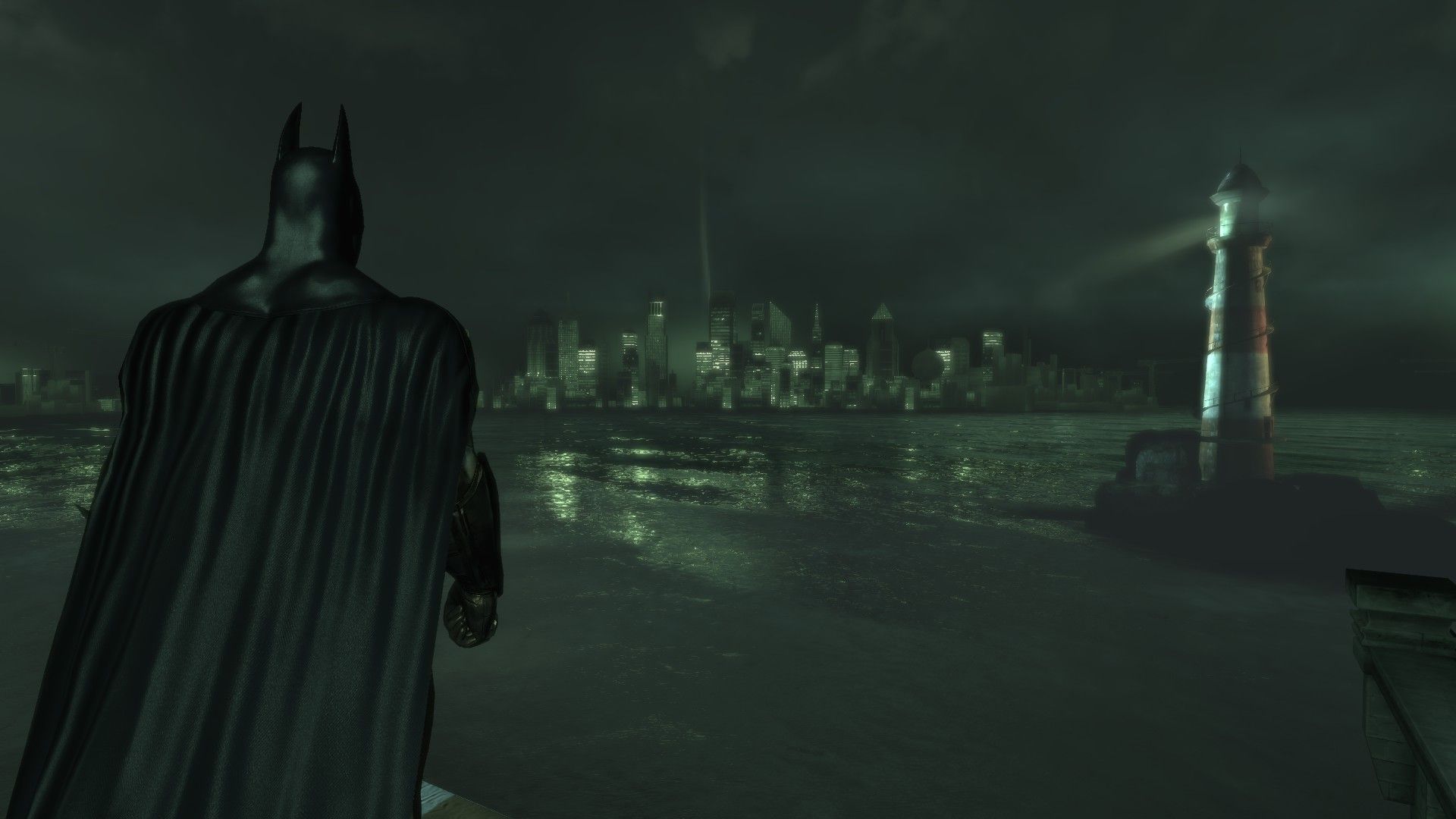 I really like this dark green atmosphere with buildings far away with lights