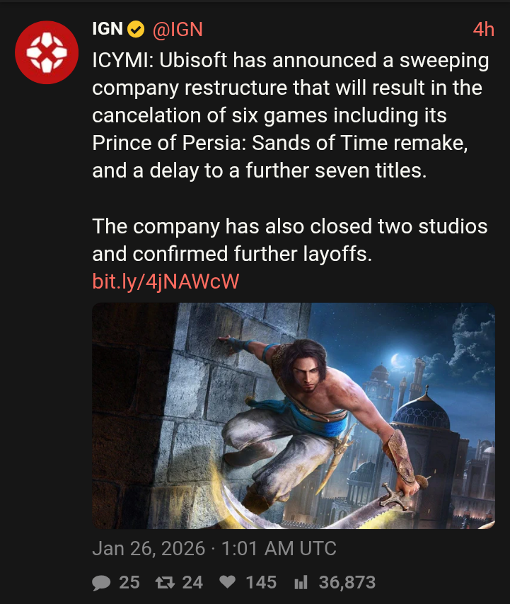 Prince of Persia used to be my childhood. Now I don't give a single fuck about it getting cancelled.
