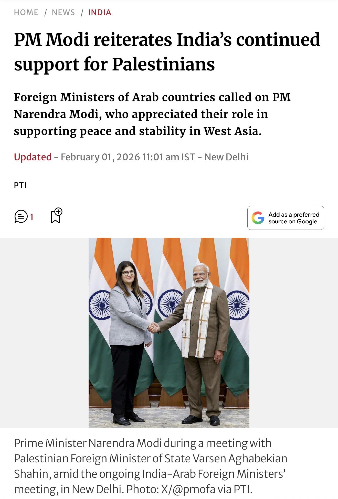 She's only focusing on Pilestine bcs she knows govt. actual policy towards it. Not her Kasmir comments.