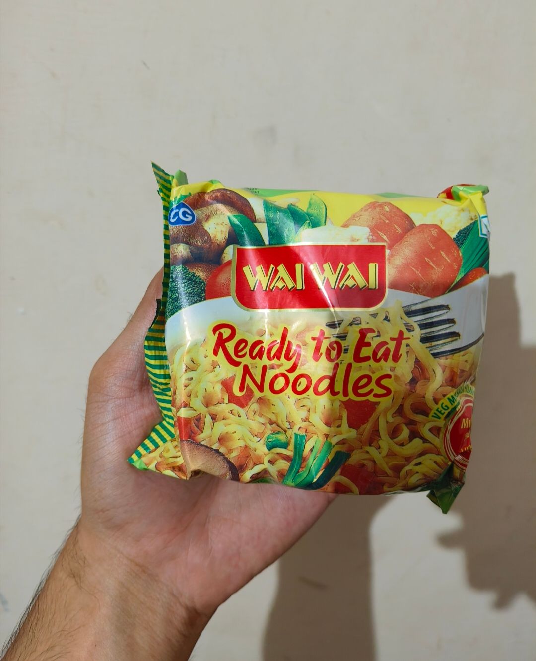 You can eat it like cup noodles (pouring hot water in a cup of crushed Wai-Wai).
