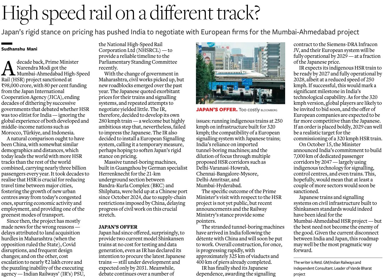 A HSR or any train infra needs three major things