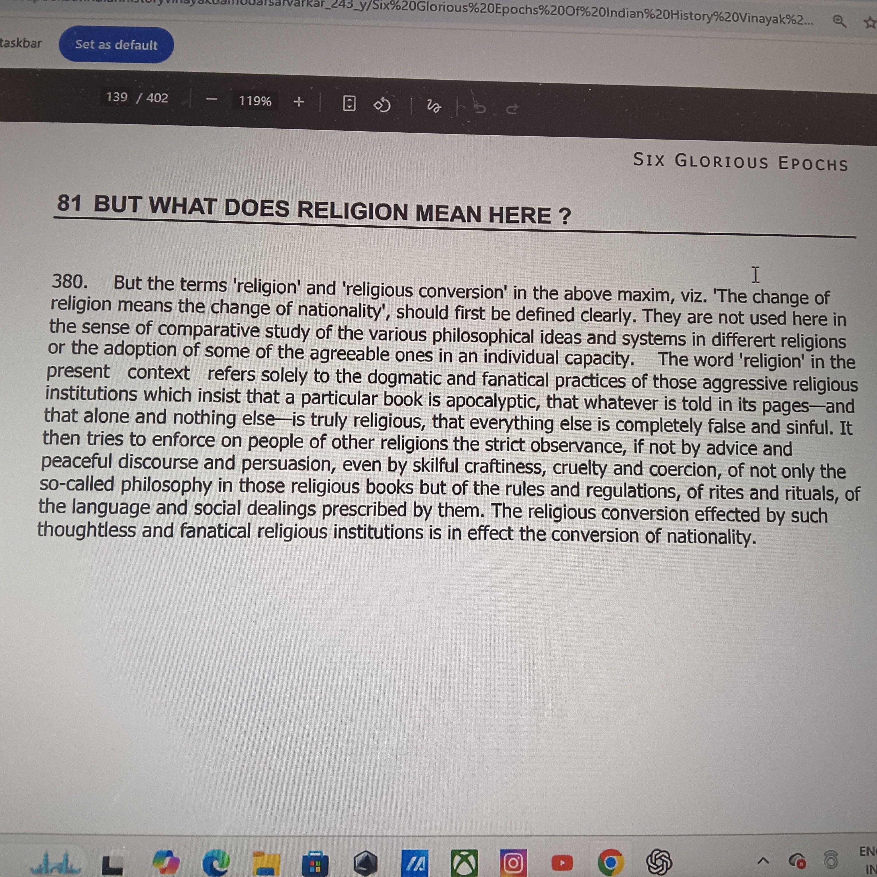 Savarkar's conception of religion for anyone interested.