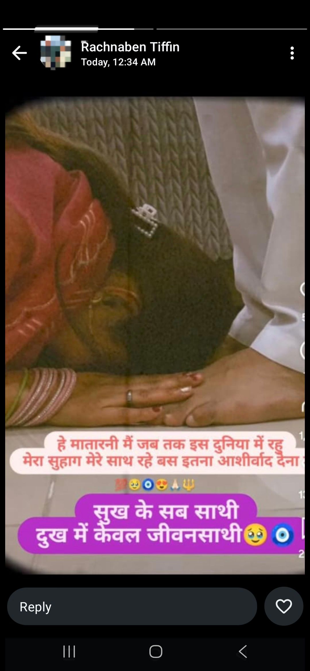 WhatsApp status posted by my tiffin wali aunty.