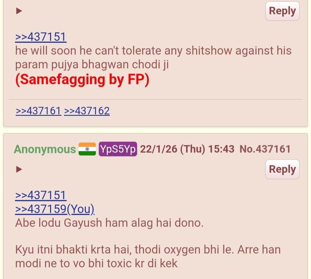 (Samefagger - FP, castebaiting, anti Hindu posts, religious baits, racebaits. )