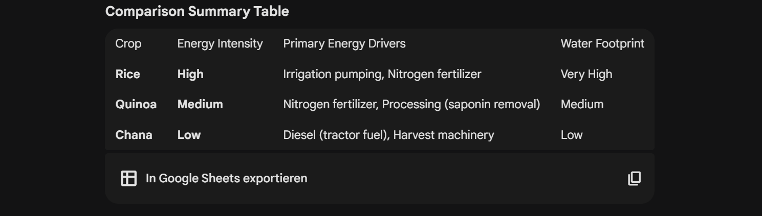 Chana/Chickpeas have even lower energy footprint than Quinoa.